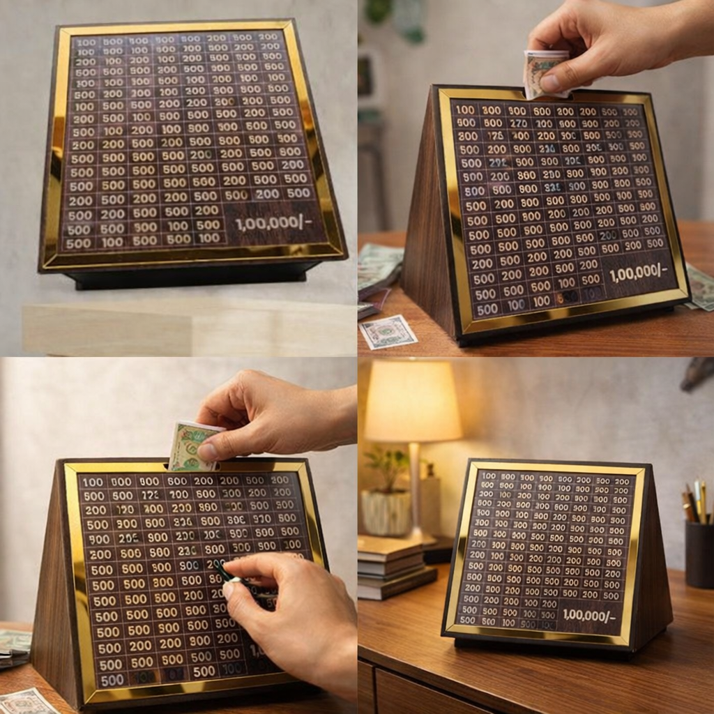 Use for Any Goal – Travel, Gadget, Education Use this money box for adults or kids to save for anything – a phone, trip, bike, or emergency. With regular savings, you can reach any ₹1 lakh or ₹2 lakh goal easily. It's your personal saving box with target amount